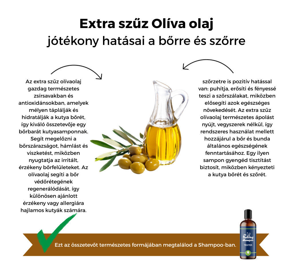 Kókuszolaj, sheavaj, olívaolaj, ricinusolaj: Természetes zsírsavakkal ápolják a bőrt és a szőrzetet, puhítanak, táplálnak, és elősegítik a fényes, egészséges bunda kialakulását.