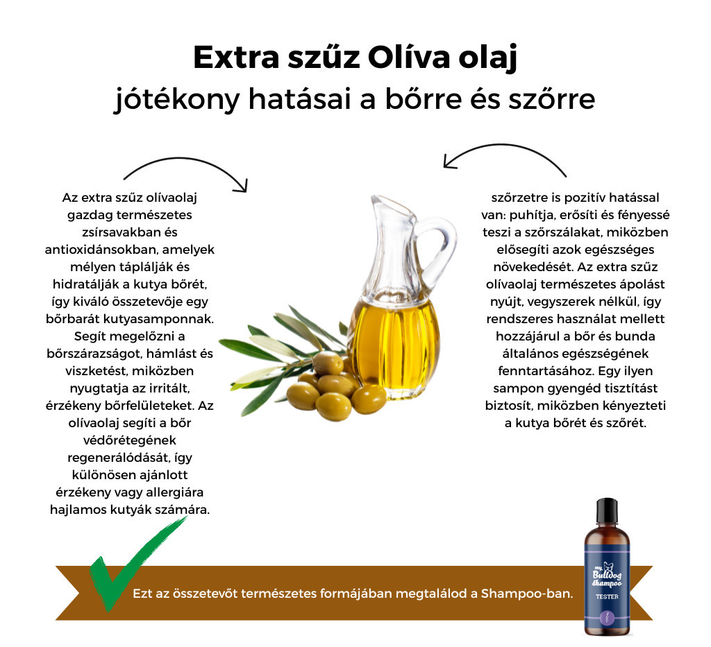 Kókuszolaj, sheavaj, olívaolaj, ricinusolaj: Természetes zsírsavakkal táplálják a bőrt és a szőrzetet, visszaállítják a bőr védőrétegének egyensúlyát, miközben fényesítik és hidratálják a szőrzetet.