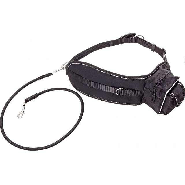 Elsősorban nagyobb testű, sokat sétáló kutyák számára kialakított futópóráz derékövvel.