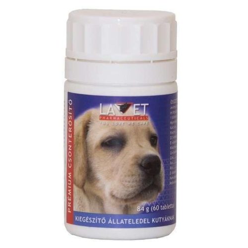 A LAVET PRÉMIUM tabletták állatorvosok által továbbfejlesztett, még több természetes eredetű, a szervezet számára nélkülözhetetlen anyagokat tartalmazó új formulái. A LAVET PRÉMIUM CSONTERŐSÍTŐ tabletta kutyának a legújabb táplálkozás-élettani és gyógyszertani ismeretek alapján összeállított készítmény, amely a tej és a szárított élesztő magas biológiai értékő természetes alkotórészeit, valamint jól értékesülő kalcium-és foszforvegyületeket biztosít kedvenceink optimális táplálásához. Ezáltal a termék a normális csont- és fogfejlődés elősegítésére, a fogak és a csontok szilárdságának fokozására, a vemhesség és a szoptatás alatt megnövekedett ásványianyag-szükséglet fedezésére, a kalcium- és foszforhiányból eredő anyagforgalmi zavarok megelőzésére szolgál.