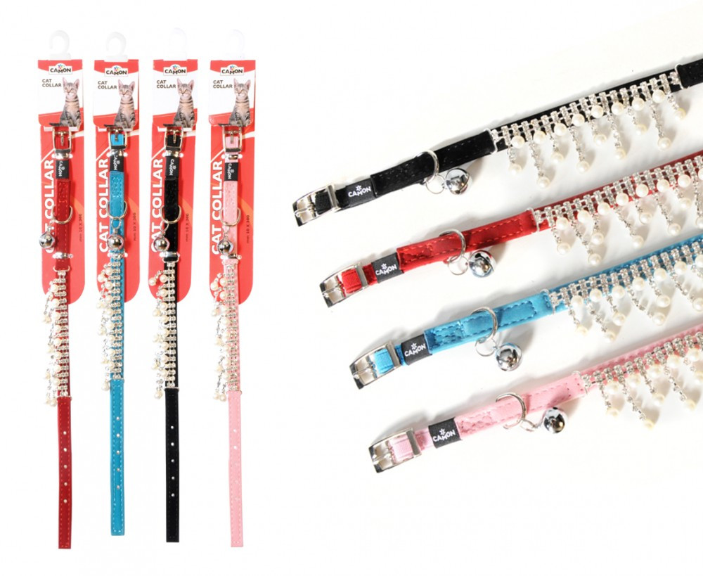 Camon Bársony strasszos gyöngyös nyakörv 10*300 mm azúr