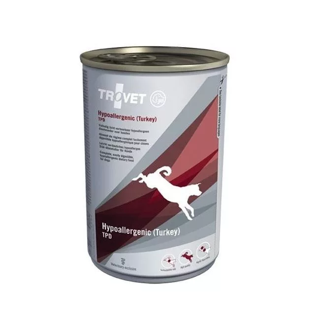 TROVET Hypoallergenic Diet Turkey (TPD) – Pulykahússal hypoallergén konzerv érzékeny kutyák számára természetes antioxidánsokkal A táplálékkal szembeni túlérzékenység azt jelenti hogy a táplálék valamely összetevője a szervezetben túlzottan erős, á